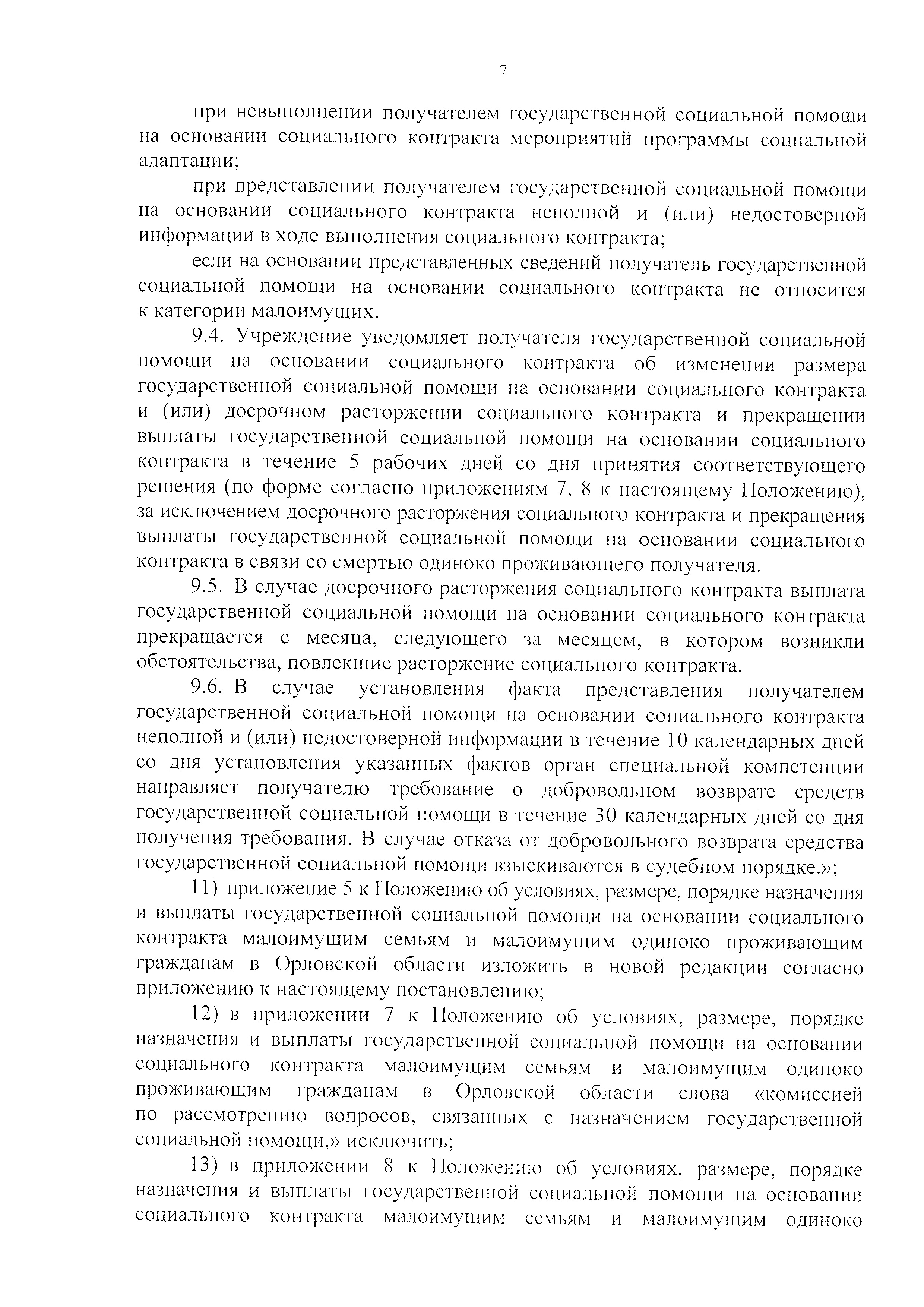 О внесении изменений в постановление Правительства Орловской области от 14.02.2014 г., № 48 "Об утверждении Положения об условиях, размерах, порядке назначения и выплаты государственной социальной помощи малоимущим семьям и малоимущим одиноко проживающим гражданам Орловской области и Положения об условиях, размере, порядке назначения и выплаты государственной социальной помощи на основании социального контракта малоимущим семьям и малоимущим одиноко проживающим гражданам в Орловской области"