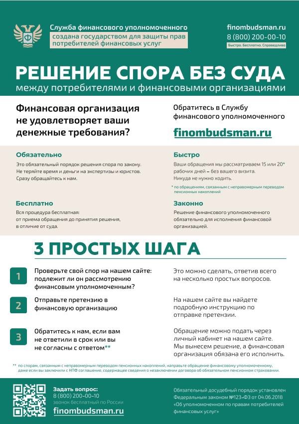 Если спор с финансовой организацией не урегулирован – подайте обращение финансовому уполномоченному на официальном сайте или на портале Госуслуг либо через любой МФЦ Орловской области.